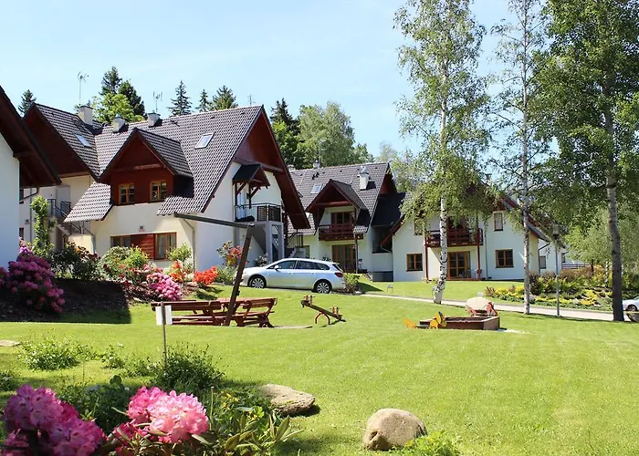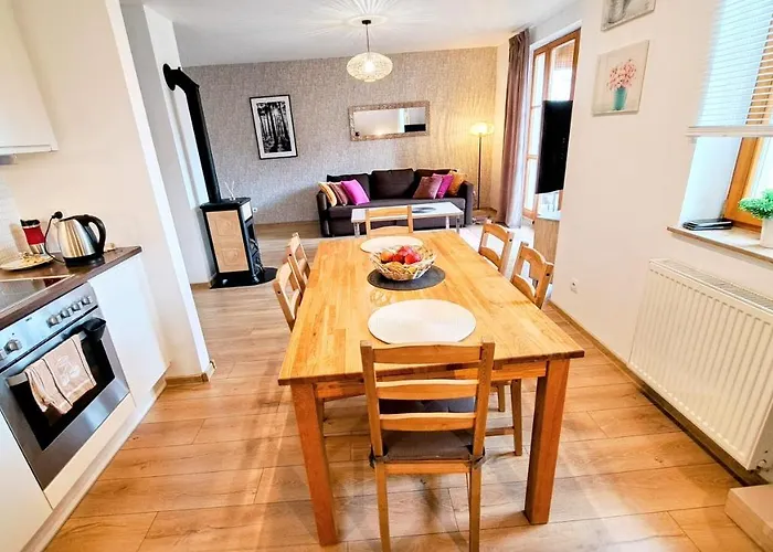 2-slaapkamer Apartament Familijny Appartement appartement ligt in het westen van Karpacz en verwelkomt gasten met moderne faciliteiten zoals draadloos internet en essentiële voorzieningen zoals gratis priveparkeerplaatsen. Het appartement van 78 m^2 is gelegen op 125 km van Wroclaw-Copernicus luchthaven.